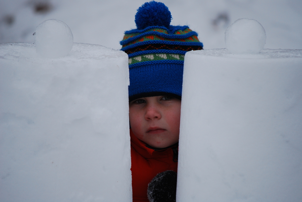 Wow! We got some snow (and ice). On Monday, we got about 8 inches of snow that was then followed by a layer of sleet and ice. We weren't able to make a snowman, but the boys got to enjoy sledding for the first time and they built a snowfort. Here are some pics of the big, big smiles and good times...